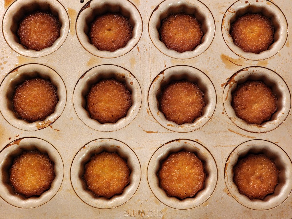 - Lower the temperature to 350°F. Bake for a further 45 mins till the Canele is golden.