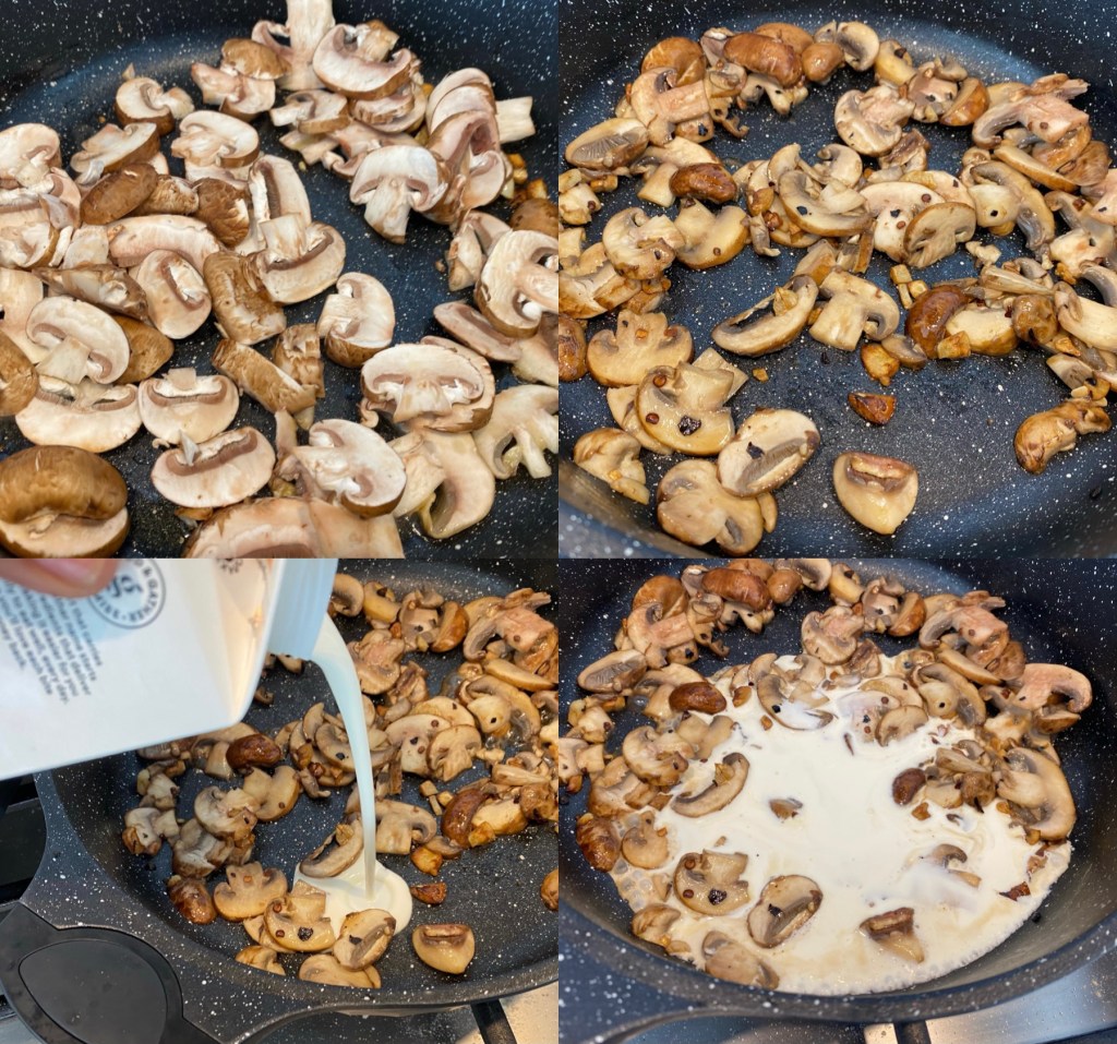 - Add sliced mushrooms. Sauté till all the moisture evaporates.