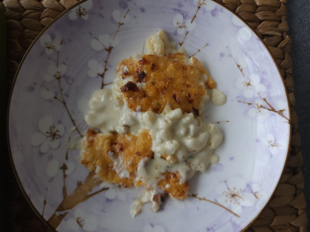 - Put the bowl in the broiler for 5 mins till the cheese starts to bubble and caramelize and golden.