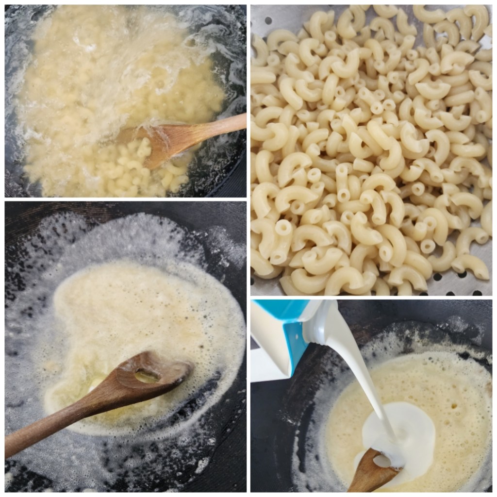 - Cook the elbow macaroni for 8 mins till el dente. Drain and toss with some avocado oil. Keep aside.
