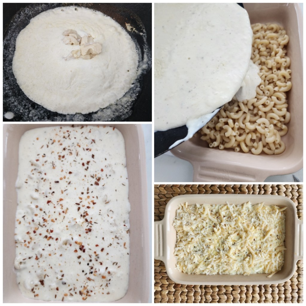 - Turn the oven to BROIL setting to HIGH. Pour the cooked macaroni in an oven proof bowl. Add the prepared white sauce.
