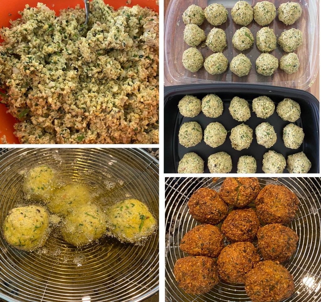Freezing the falafel is again I find a neat trick. It keeps the shape of the felafel perfectly and fries so well.