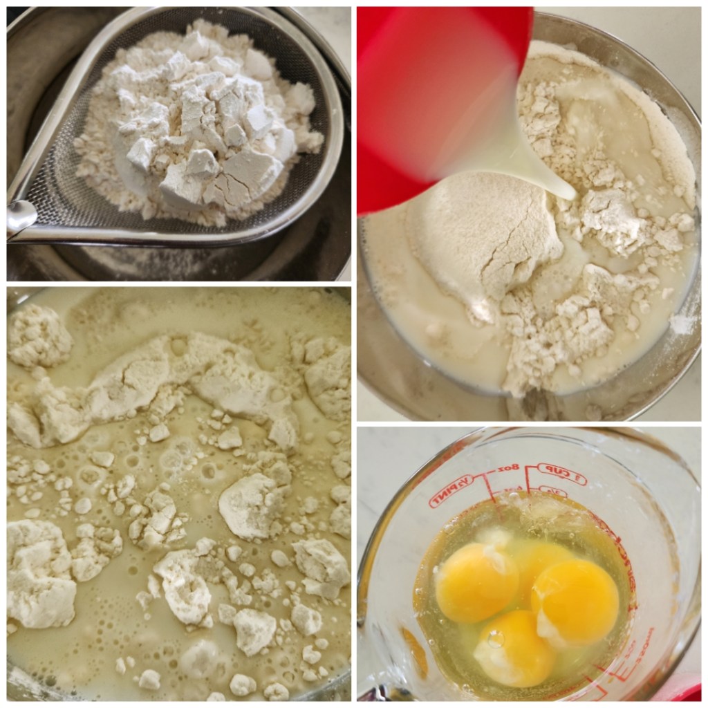 - Gradually add in the milk and water, whisking continuously until the batter is smooth.