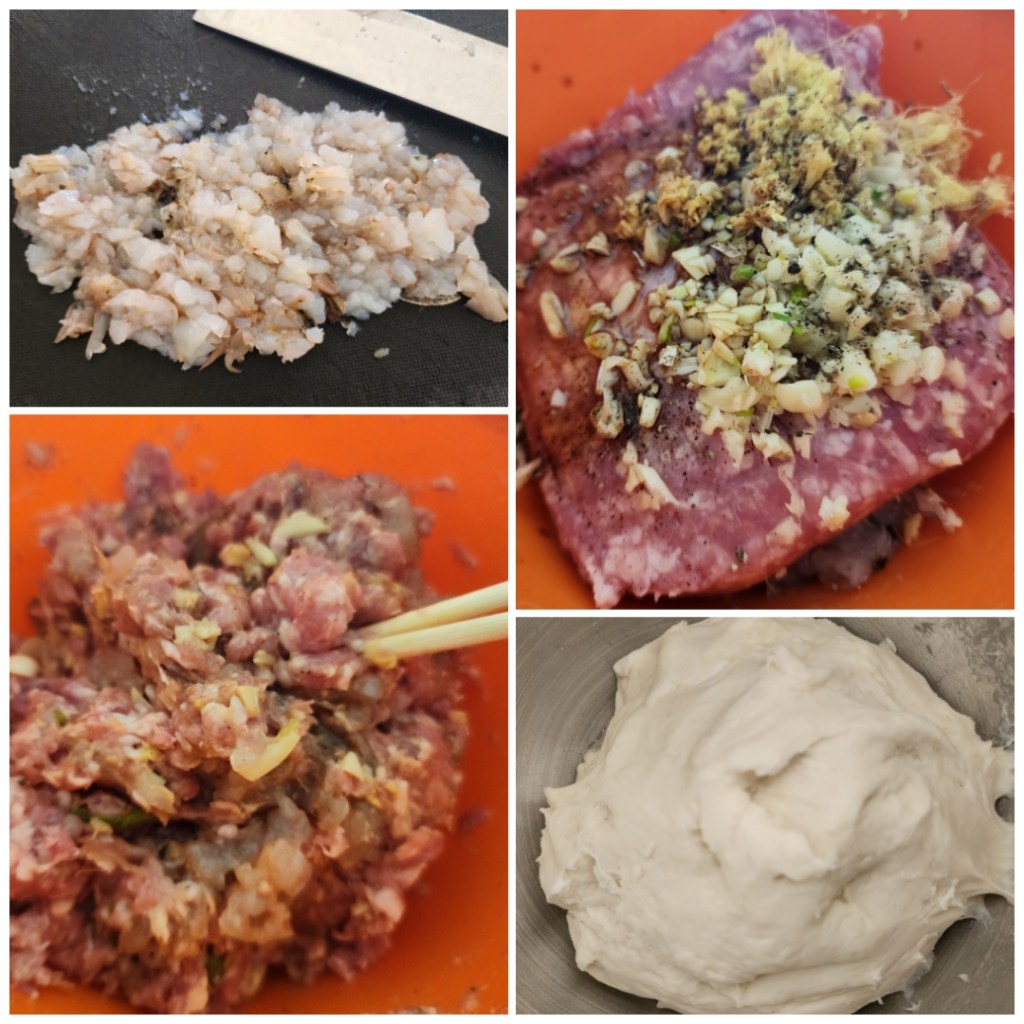 - Mix the minced pork and shrimp together in a bowl.
