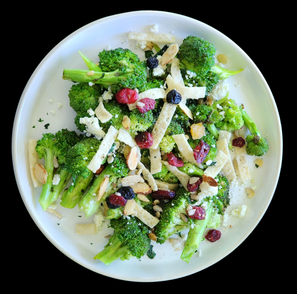 - Gently toss the broccoli with the dried fruits and feta to ensure all the flavors are well combined.