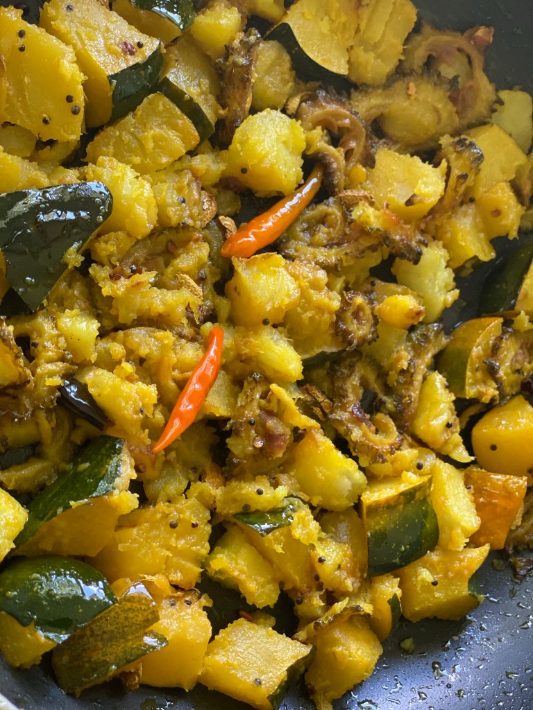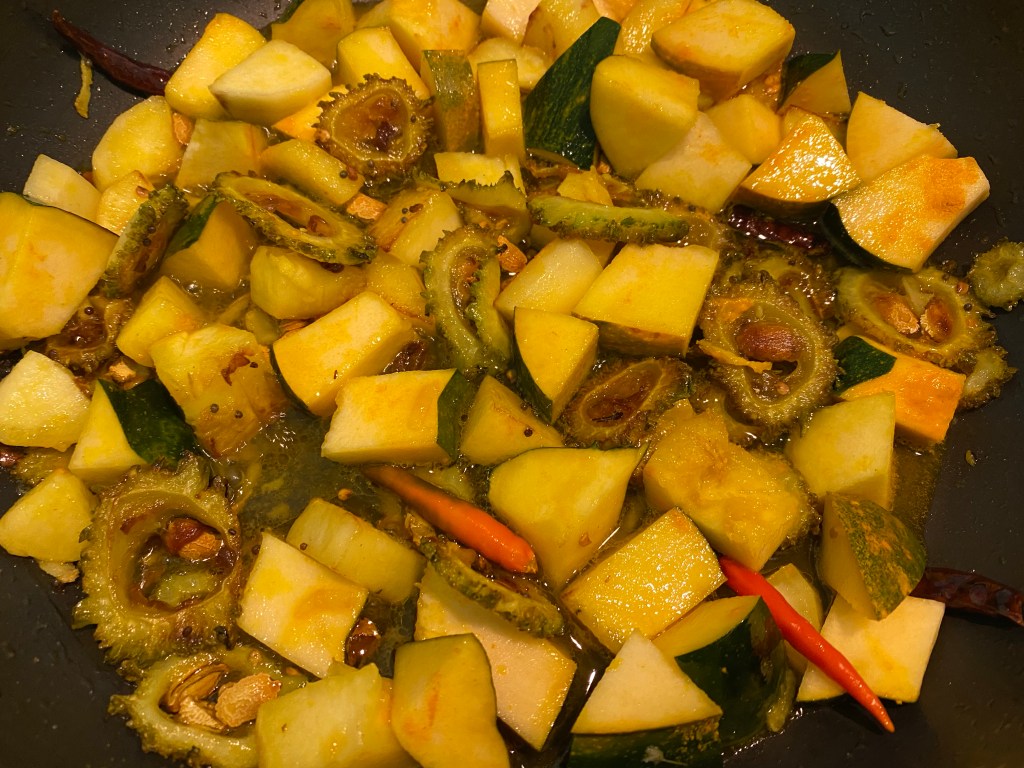 Ucche Kumro Chechki is a delightful Bengali recipe that celebrates the beauty of simplicity and the flavors of humble ingredients. The two star ingredients- ucche (bitter gourd) and kumro (pumpkin) transforms this vegetarian dish into a delicious and flavorful delight that will make you fall in love with this underrated vegetable. The bitterness of the gourd is beautifully balanced with the sweetness of pumpkin, creating a harmonious fusion of flavors. The delightful texture of the pumpkin complements the bitter gourd beautifully.The simple dish is elevated with a subtle blend of Bengali spices, including panch phoron (see Panch Mishali Torkari, turmeric, and chili powder, which add depth and complexity to the overall taste. The cooking process involves sautéing the bitter gourd and pumpkin in a fragrant mixture of spices, creating a mouthwatering aroma that wafts through the air. The vegetables are cooked until tender yet retaining their texture, resulting in a dish that is both visually appealing and satisfying to the palate. Be prepared to be pleasantly surprised by the symphony of flavors that awaits. This vegetarian dish which is a true celebration of flavors and textures—a dish that showcases the versatility of vegetables and the culinary prowess of Bengali cuisine. Ucche Kumro Chechki is an absolute must-try. It adds a unique touch to any meal, infusing it with the vibrant flavors of Bengal. Enjoy this as a side dish with steamed rice or as an accompaniment to a traditional Bengali meal @sarchakra