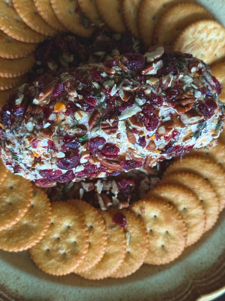 Don’t you love a recipe that is easy to make but is also a crowd pleaser? I’m sure this is a popular one for many families during this festive season. This Cream Cheese Log with pecans, cheddar, cranberries, rosemary, and oregano is rich, creamy, tangy, crunchy, sweet and savory with aromatic herbal notes. It really is the perfect festive appetizer for holiday entertaining that pairs well with crackers, veggies, or bread. It is easy to prepare and is visually striking, adding a gourmet touch to any holiday spread. Whether served on a cheese board, as a dip, or as individual mini logs, it is a versatile and elegant option for any celebration. I like to serve this for guests and family members as something to graze on while the main meal is being warmed up and served @sarchakra