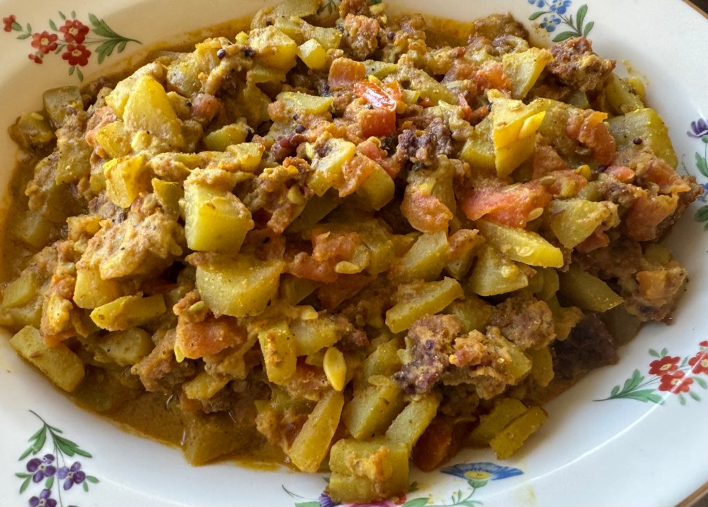 I grew up in a household where my Mum lovingly crafted all kinds of bori, aloo papad (made with potato), sabu papad (made with tapioca), aamshotto (mango leather), each prepared with patience and care. It was a charmed existence, filled with fresh, locally sourced ingredients- a way of life I took for granted at the time. Only now do I realize the magic of those moments: the art of transforming nature’s bounty into something extraordinary, making the most of what was readily available with skill, tradition and love. One of the dishes my mum used to make was this Bori Diye Lau-bottle gourd cooked with sundried lentil dumplings. She used to make the bori from scratch but luckily readymade versions are available in Indian stores, though, of course,they lack that unmistakable touch of home. Bengali cuisine is a beautiful paradox; it can be intricate and layered or incredibly simple, relying on just a few essential ingredients. This dish falls into the latter category. But simplicity doesn’t mean compromise -there is no substitute for Panch Phoron or mustard oil in this recipe. If you’re familiar with Bengali food you know these are the heart and soul of its unmistakable flavors @sarchakra