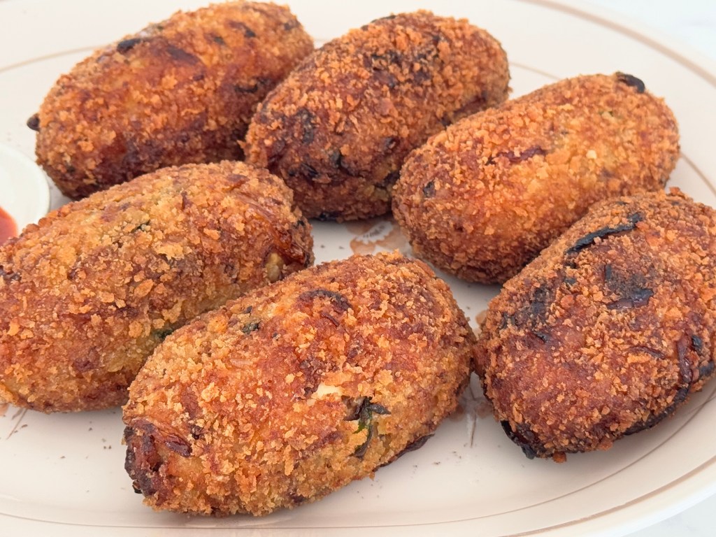 If there’s one thing Bengalis do best, it’s turning simple ingredients into something utterly delicious. Dimer Chop is a very well known Bengali street food made with a few ingredients- spiced mashed potatoes and boiled eggs, dipped into an egg batter to form a crisp, golden breadcrumb coating. Often enjoyed with a side of kasundi (Bengali mustard sauce) and a steaming cup of chai, this dish is a staple at roadside stalls and evening addas (gatherings). In Bengali households, Dimer Chop is pure nostalgia—memories of monsoon evenings, laughter-filled tea breaks, and the unmistakable aroma of frying in the early hours of the evening that signals something special is on the way. This recipe stays true to its roots- it is simple, flavorful, and deeply satisfying with just the right amount of crunch and spice @sarchakra