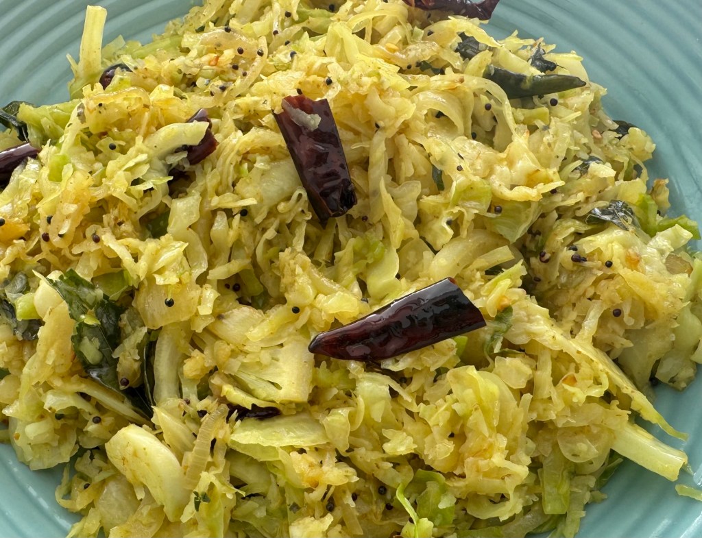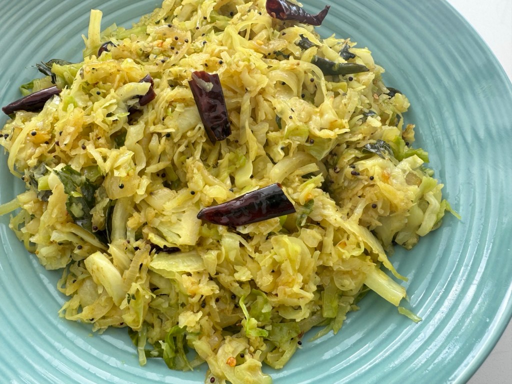 Sometimes all you crave is a simple, light, earthy Kerala-style thoran with a slightly sweet heat and golden crunch. There’s something quietly perfect about cabbage when it is cooked right. This is a South Indian thoran, a dry stir-fry fragrant with mustard seeds, curry leaves, and sweetened coconut. This version layers in warmth from the coriander, heat from the chilies, and a bit of unexpected depth and umami from the fish sauce. It is quick, satisfying, and packed with flavor, exactly the kind of dish that proves simple doesn’t mean boring @sarchakra