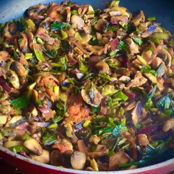 Mushrooms and Spring Onions